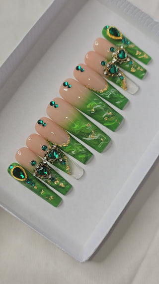 Sparkling Green Stiletto Nails | Christmas Nails | Fall Nails